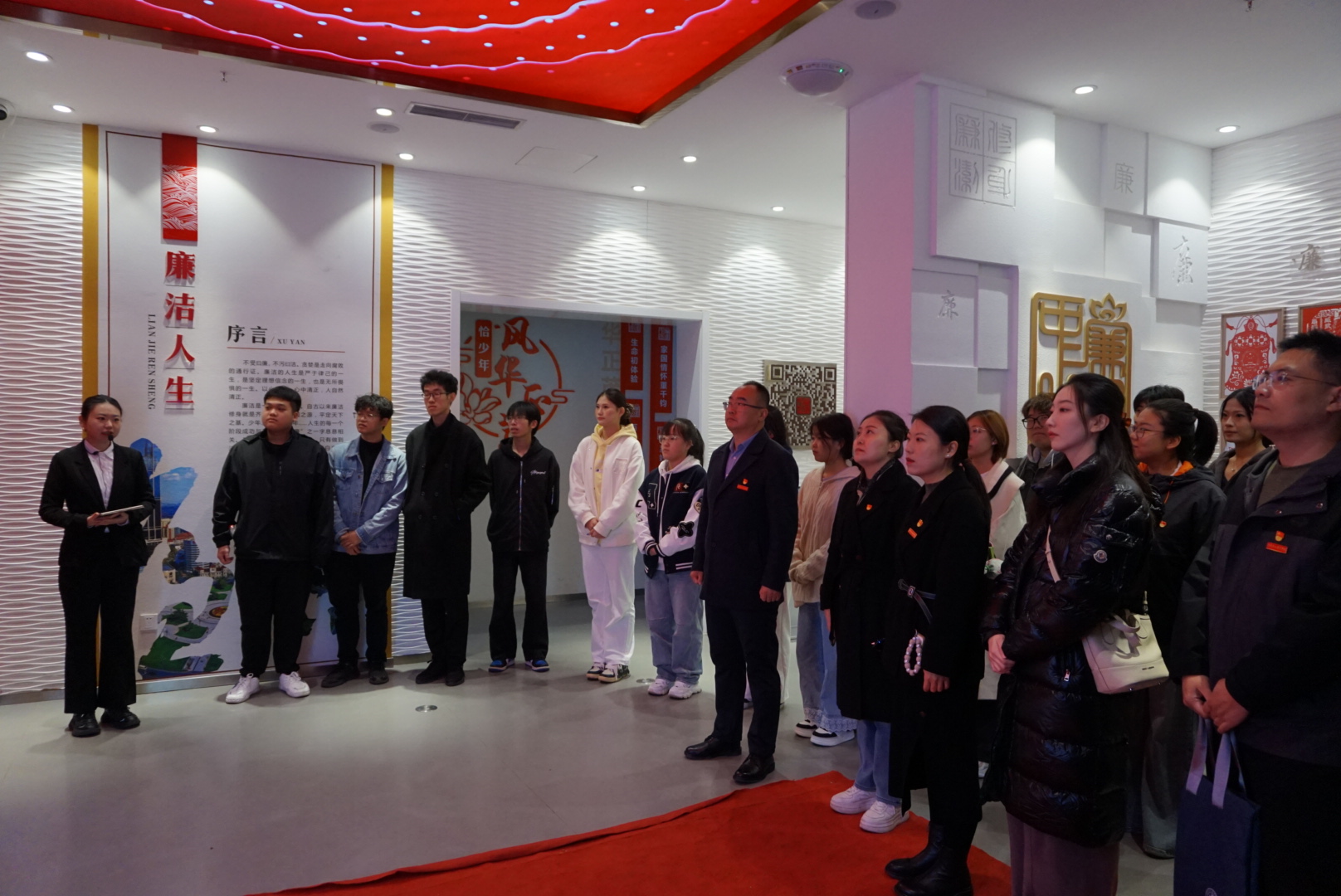 全体参观人员认真聆听讲解,驻足观看展品和图片,沉浸式体验廉洁文化建设的精神内涵。过程中,大家怀着崇敬之情参观了众多在新中国建设时期涌现出的可歌可敬的英模人物事迹展陈,亲身体验了3D裸眼交互、全息幻影成像等智能化科技手段。通过沉浸式学习与互动,全体人员深刻感悟到红色文化与廉洁文化在“少年、盛年、尊年”这三个人生关键阶段中所承载的特殊意义与深刻内涵,进一步激发了传承光荣传统、赓续精神血脉的思想自觉和行动力量。