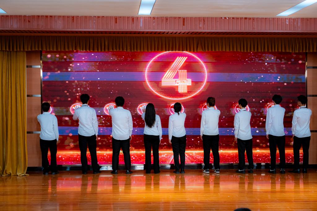 新生代表们触摸大屏幕开启了成人礼仪式。在庄重的音乐声中,同学们正式启程迈入十八岁的旅程。