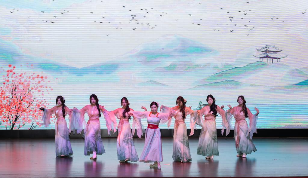 此次文艺汇演共分为“青青子衿 志怀家国”“灼灼风华 奋楫笃行”“莘莘学子 向阳追梦”三个篇章,兼具家国情、师生情与同窗情。第一篇章“青青子衿 志怀家国”中,开场舞《风华盛茂》用默契舞姿共叙“民族团结一家亲”的温暖情谊;《领航》《觉醒》两首歌曲,带领现场师生重温党的百年征程,感受青年担当;歌舞《光亮》更是以动人的旋律和优美的舞姿,诠释了理想与信念的力量,让家国情怀在舞台上缓缓流淌、浸润人心。