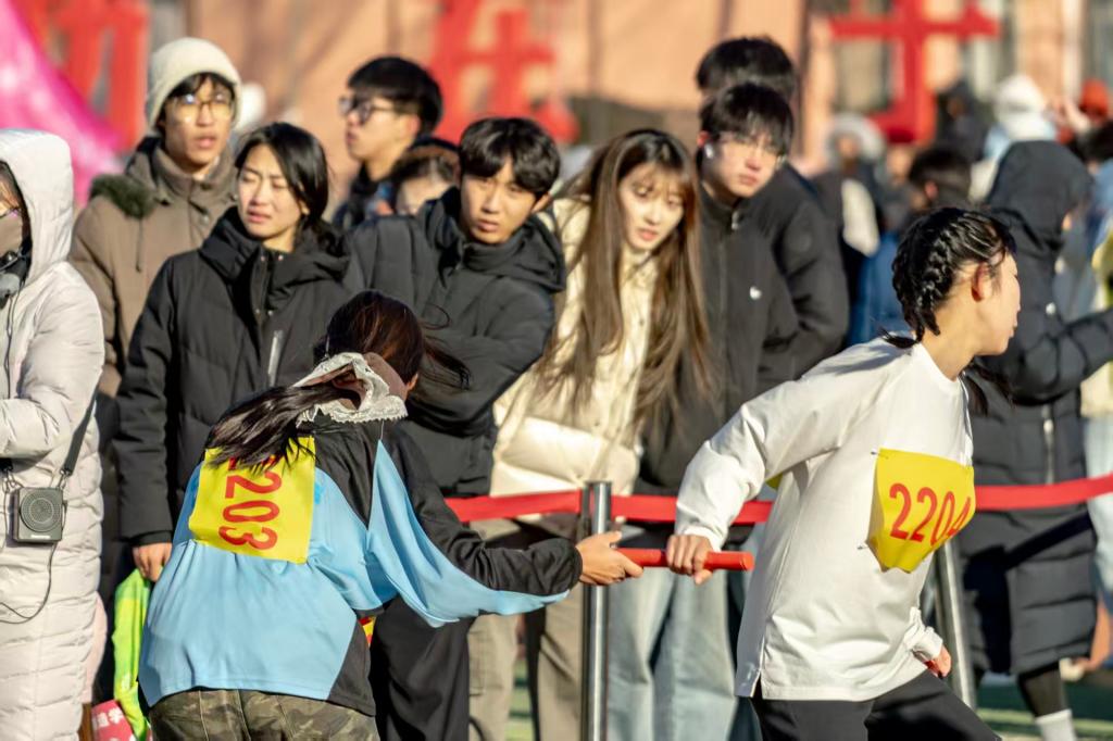 看台上,太阳集团122cc方阵汇聚成热情的海洋。院旗挥舞,助威棒齐鸣,每一句呼喊都化为寒风中炙热的能量,注入选手心间。这片看台不仅是观赛席,更是凝聚公司精神、传递力量的温暖港湾,与赛道上的奔跑交相辉映,共同奏响了冬日里最澎湃的青春乐章。