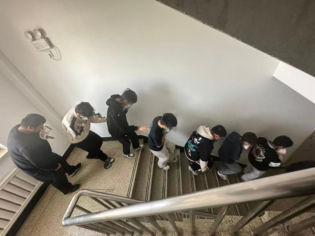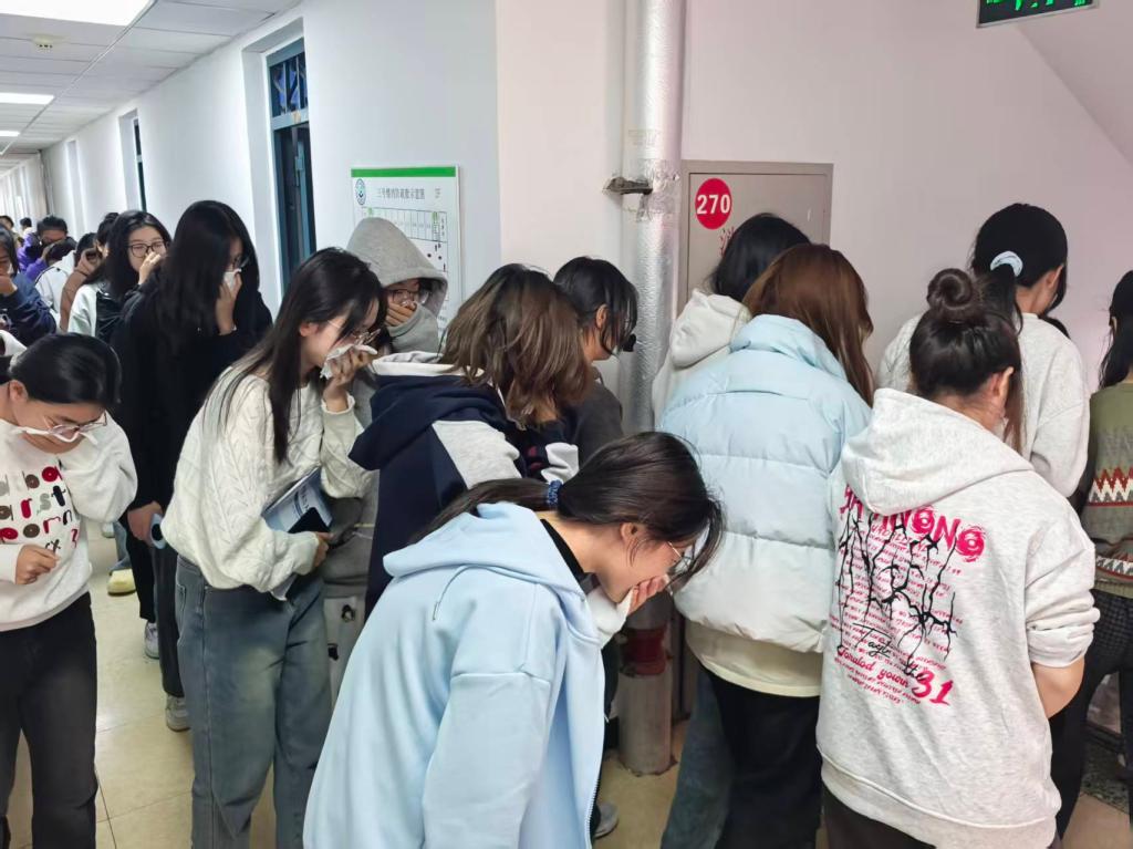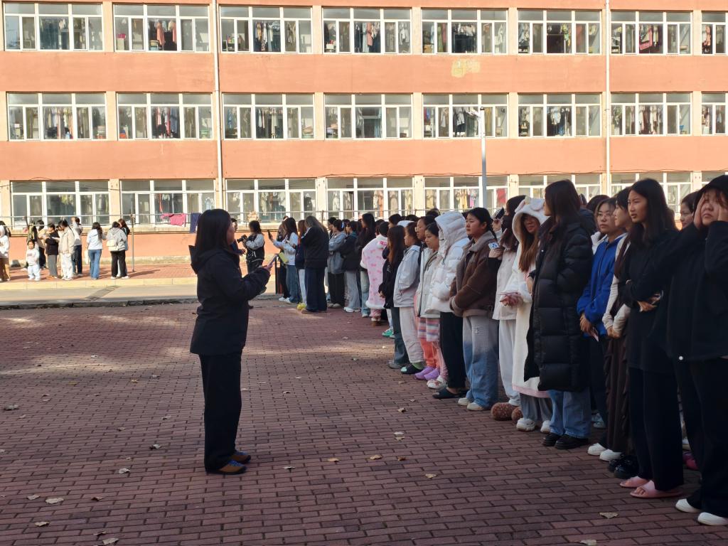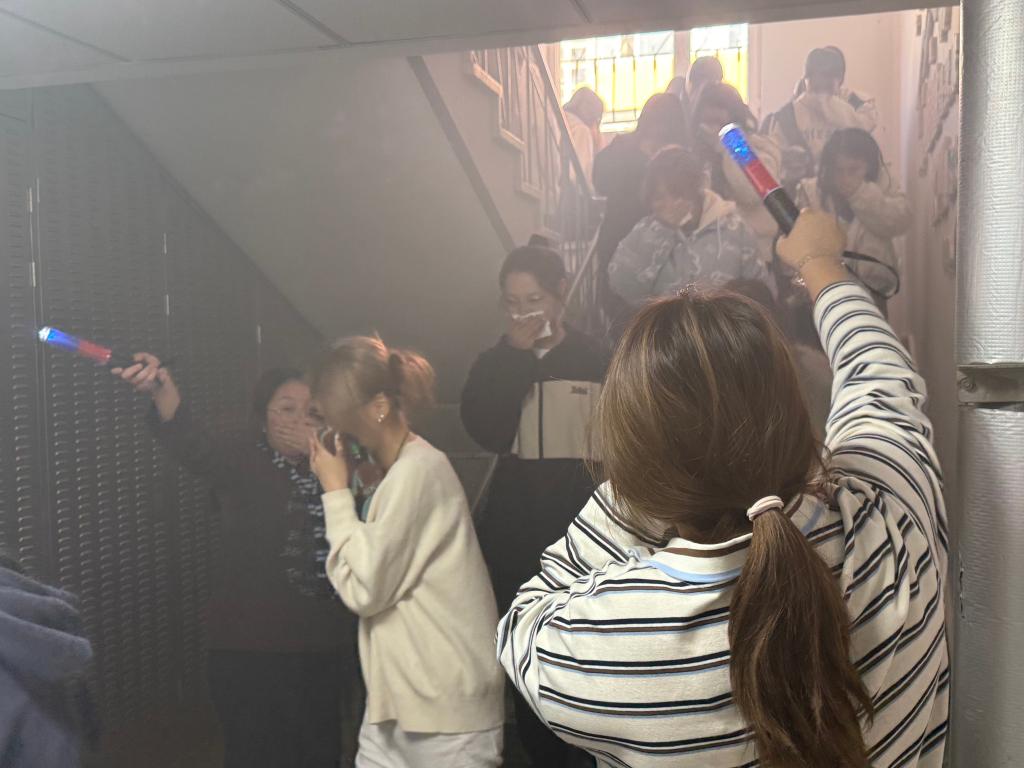 演练前,全体学工人员结合宿舍场地分布,制定了详细的演练方案,明确各环节职责分工与准备工作,保障演练顺利推进。中午12点30分,随着一阵急促的消防警报声划破校园的宁静,演练正式开始。各位辅导员组织员工迅速响应,按照预定路线弯腰低姿、捂住口鼻,紧张有序地撤离至指定安全区域,并现场清点人数,整个过程快速高效,展现出良好的应急素养。