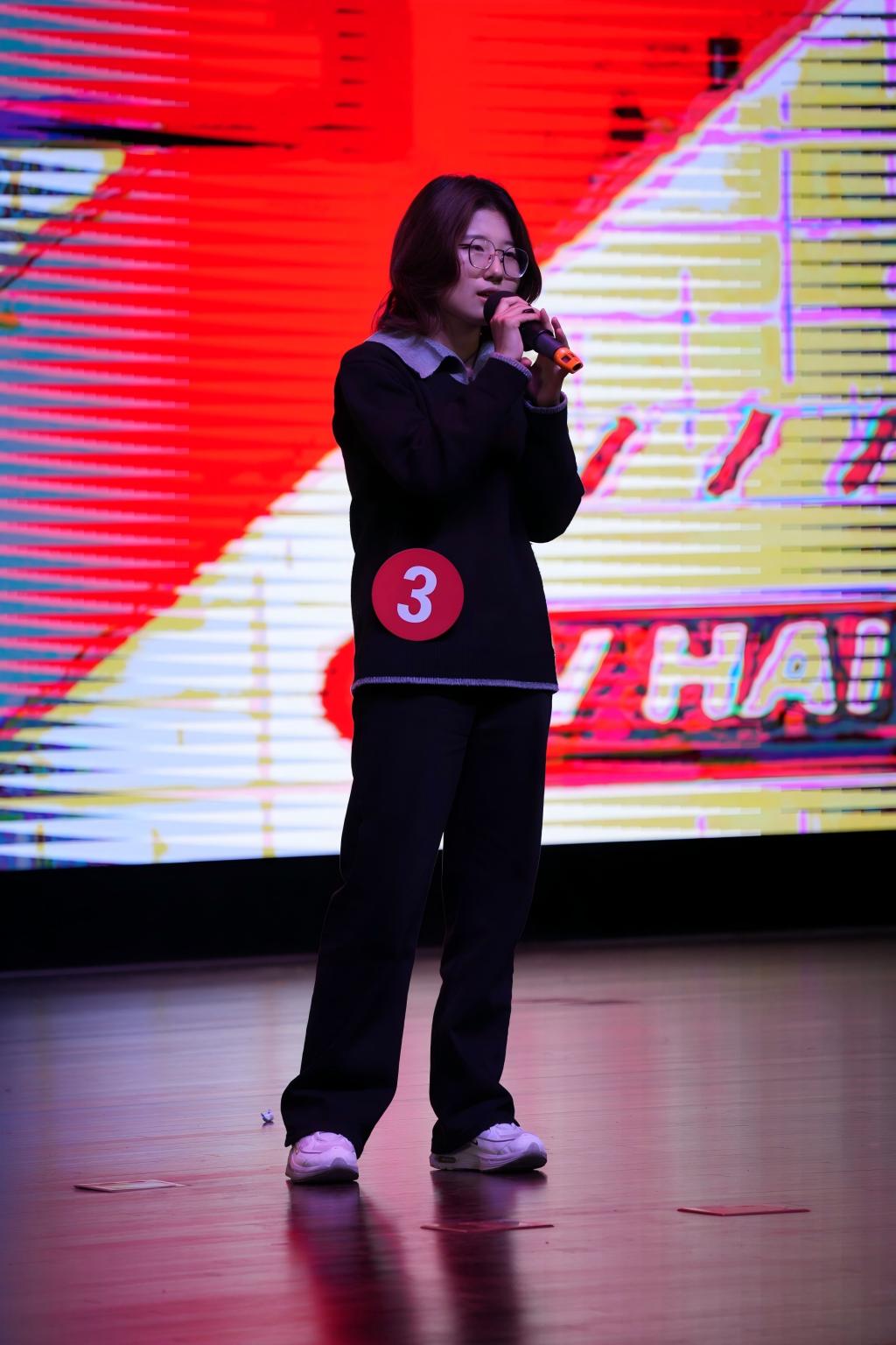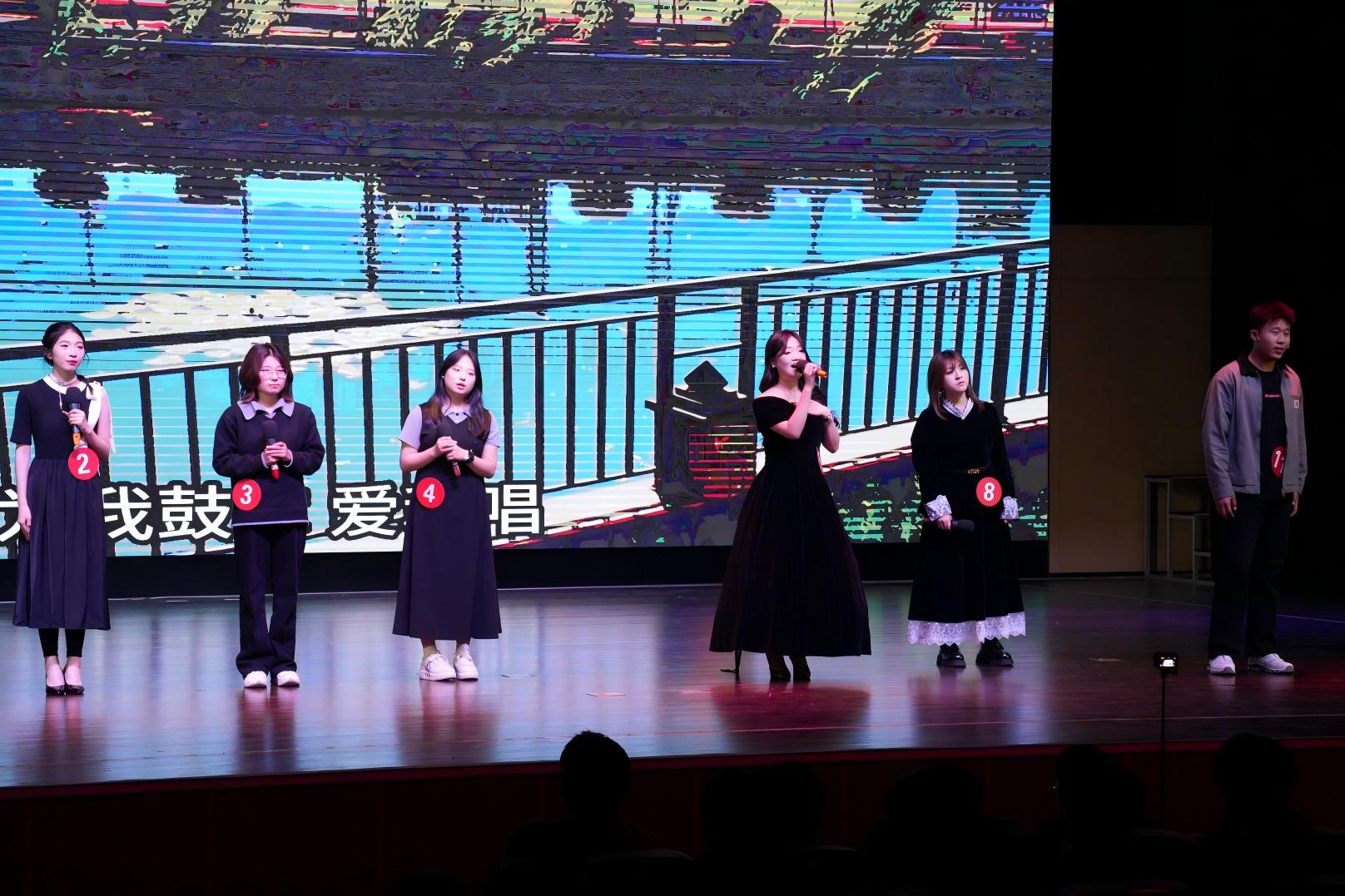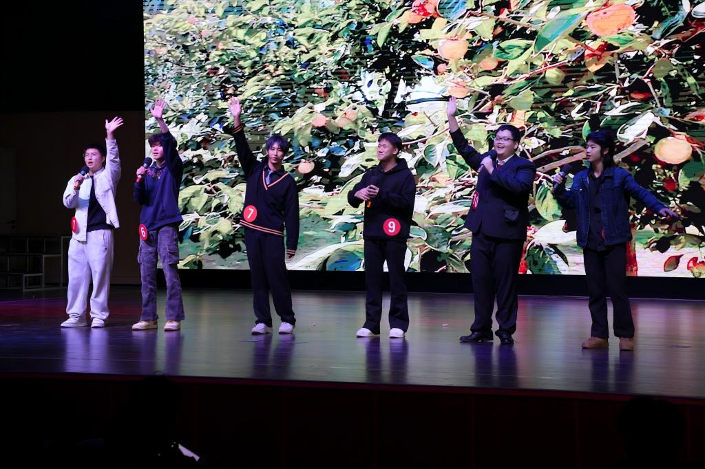 本次大赛以“校韵”与“青春”为主题,设置了“秩韵和声”“青春新章”两大环节,既考验选手的团队协作能力,也充分展现个人演唱实力。在“秩韵和声”环节,12位选手分为两组,分别演绎了《紫荆花盛开》与《青春纪念册》两首歌曲。选手们默契配合、和声优美,将校韵情怀与青春记忆融入旋律之中,赢得现场观众阵阵掌声。